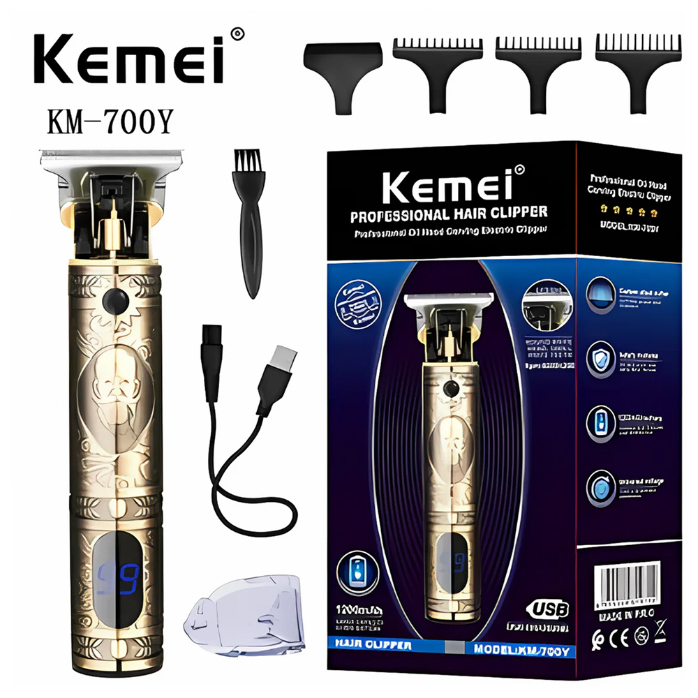 خطزن کیمی 700 دارای تیغههای از جنس کربن و استیل و به شکل تی (T) است که با جدیدترین تکنولوژی روز ساخته شده است. کیمی 700 دارای 200 گرم وزن است که در بین خطزنها یکی از سبکترین خطزنها محسوب میشود در عین سبکی قدرت سرعت و ظاهر زیبا دارد که همه ویژگیهای خوب یک خطزن را در کیمی 700 میتوان یافت. کیمی 700 دارای صفحه نمایش LED و باتری لیتیومی 1200 میلی امپر است. پک 9 تکه است که شامل خطزن، 3 عدد شانه اصلاح با شمارههای 1-2-3میلیمتری، کابل USB شارژ، برس تمیزکننده، دو عدد درپوش محافظ و روغن روانکننده است. پس با استفاده از شانهها میتوان از سایز صفر تا 3 میلیمتری اصلاح کرد که برای سایهزنی مناسب است.