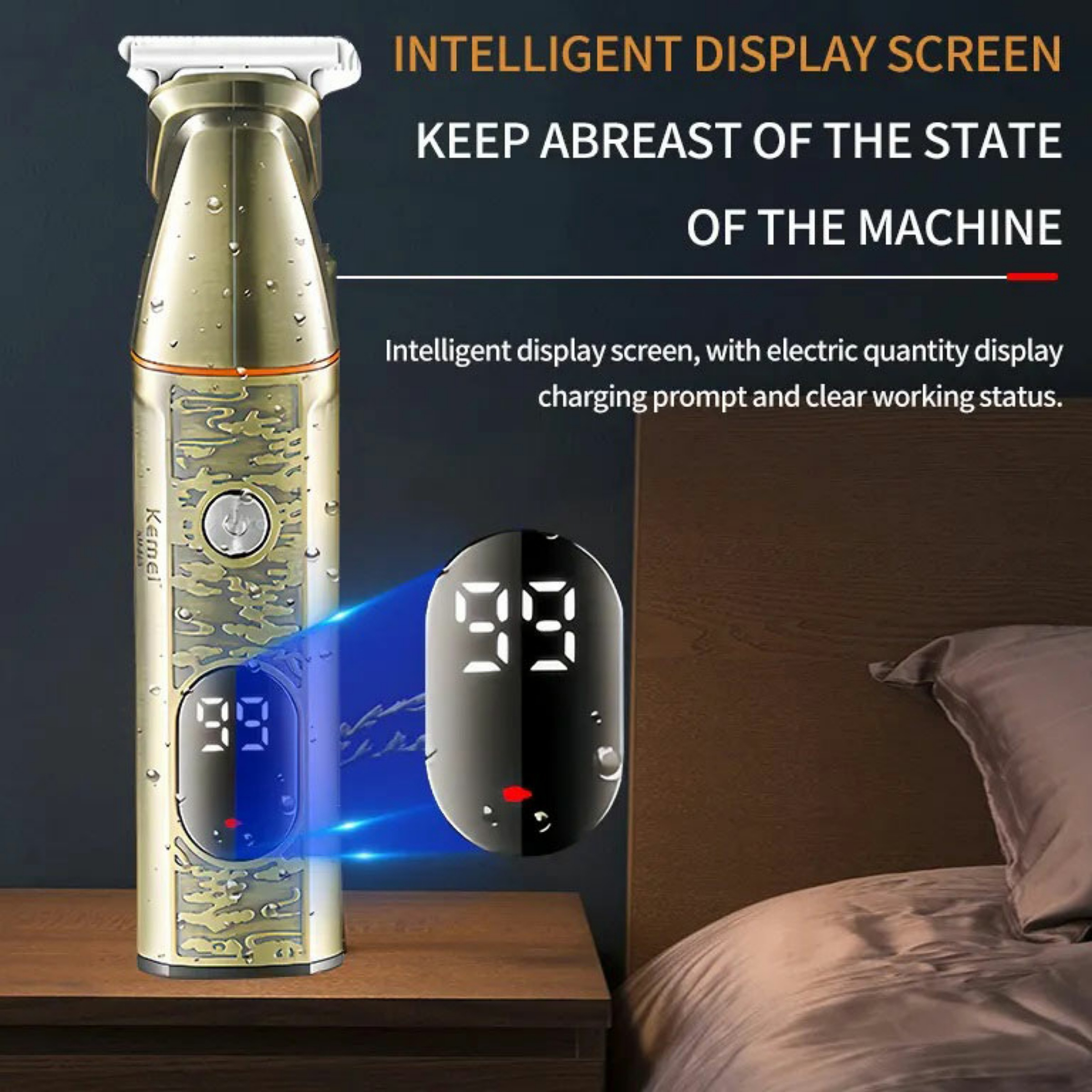 ماشین اصلاح کمی بر روی بدنه خود نمایشگر LED را قرار داده است که نشانگر شارژ باقی مانده است؛ همچنین بر روی بدنه دکمه ای تعبیه شده است که با آن میتوان دستگاه را روشن و خاموش کرد. در قسمت زیری دستگاه نیز پورت شارژ شیور قرار داده شده است.