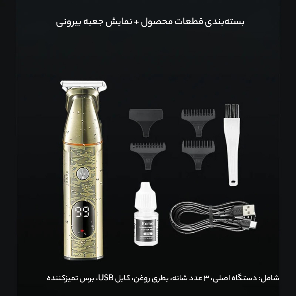 ماشین ریش تراش KM-865 دارای یک باتری قابل شارژ با ظرفیت 600 میلیآمپرساعت است و وقتی به طور کامل شارژ شود میتواند تا 90 دقیقه کار اصلاح را انجام دهد؛ این ریش تراش که از طریق یک درگاه USB-C می توانید آن را به یک شارژر دیواری یا پاوربانک و حتی لپ تاپ متصل کنید تا شارژ مجدد انجام شود.