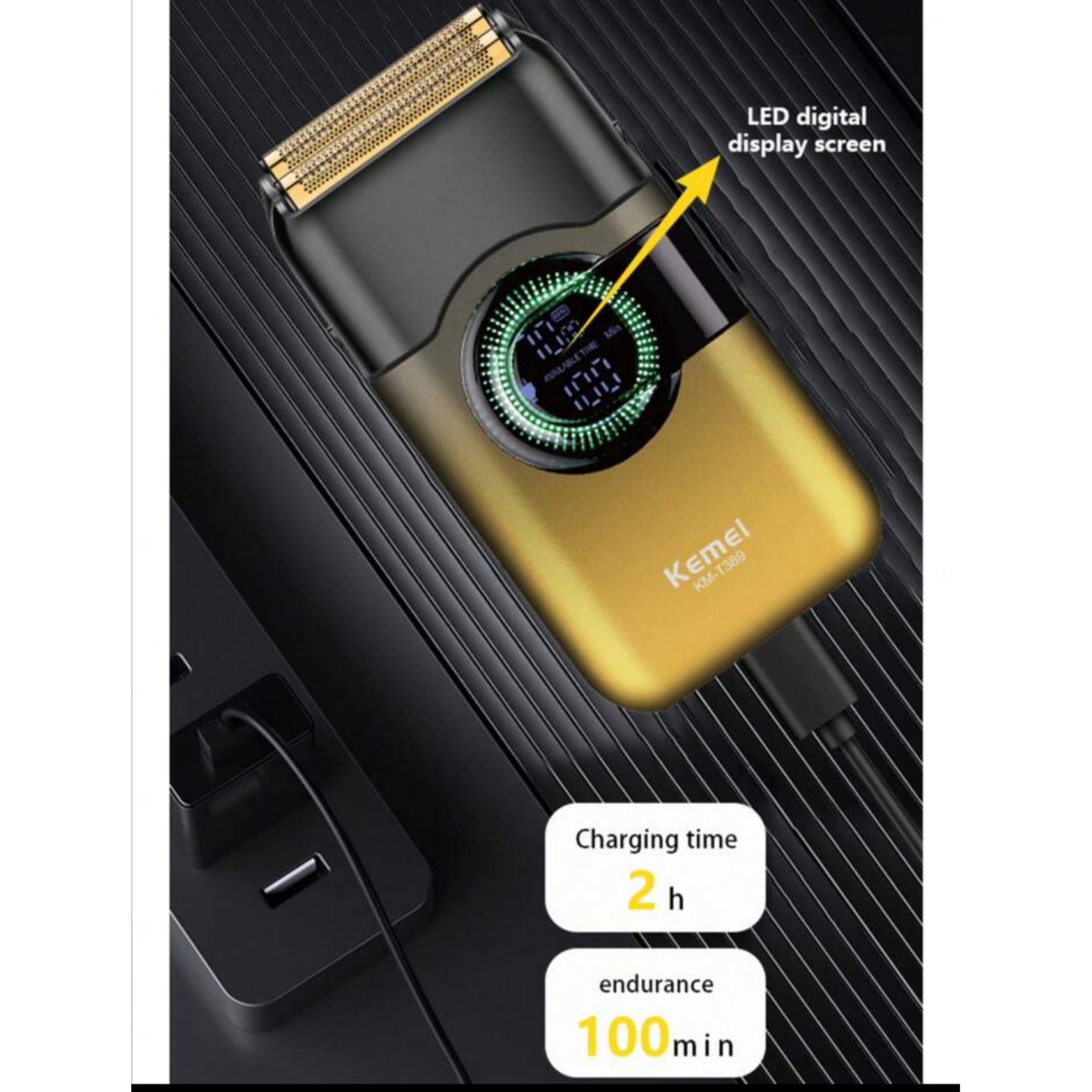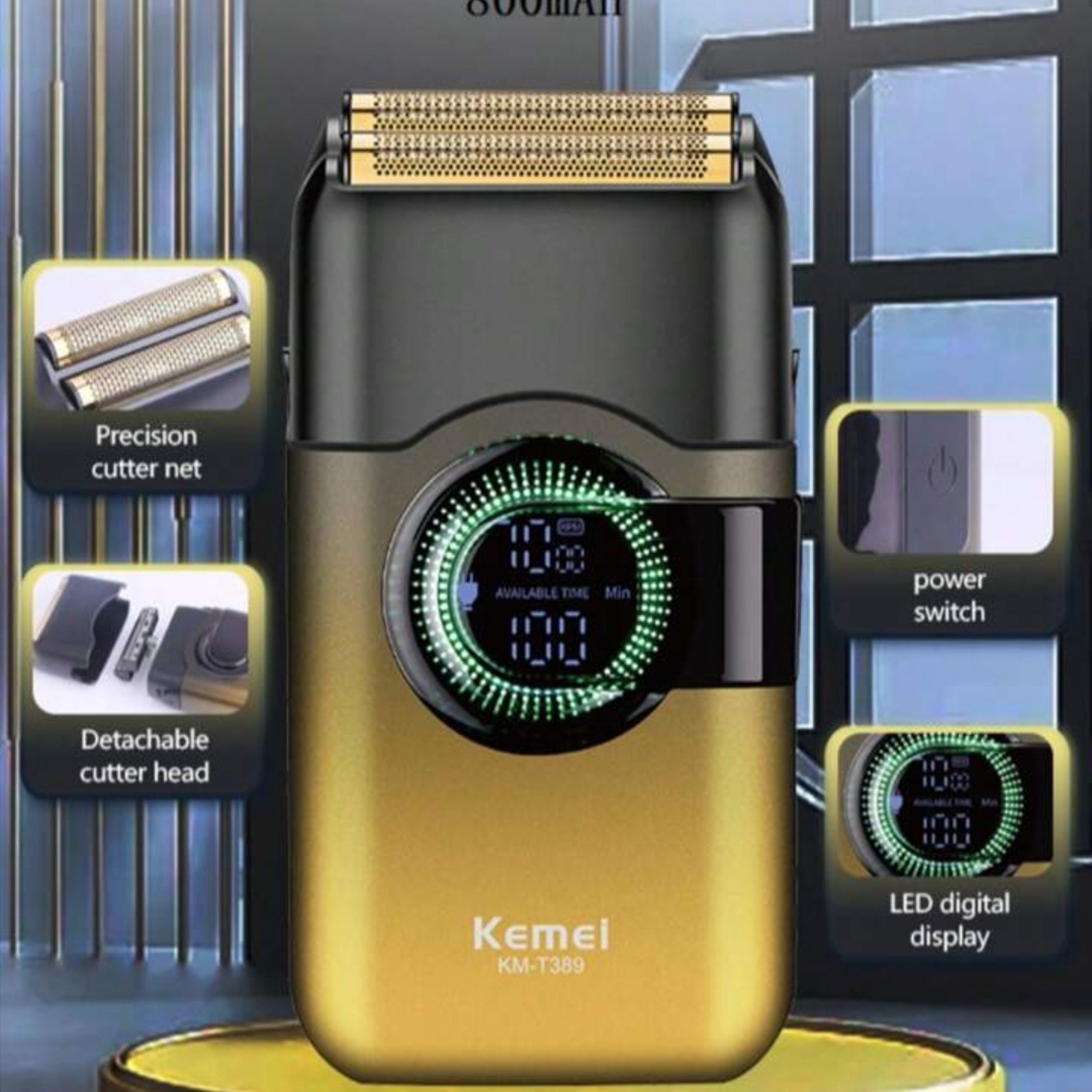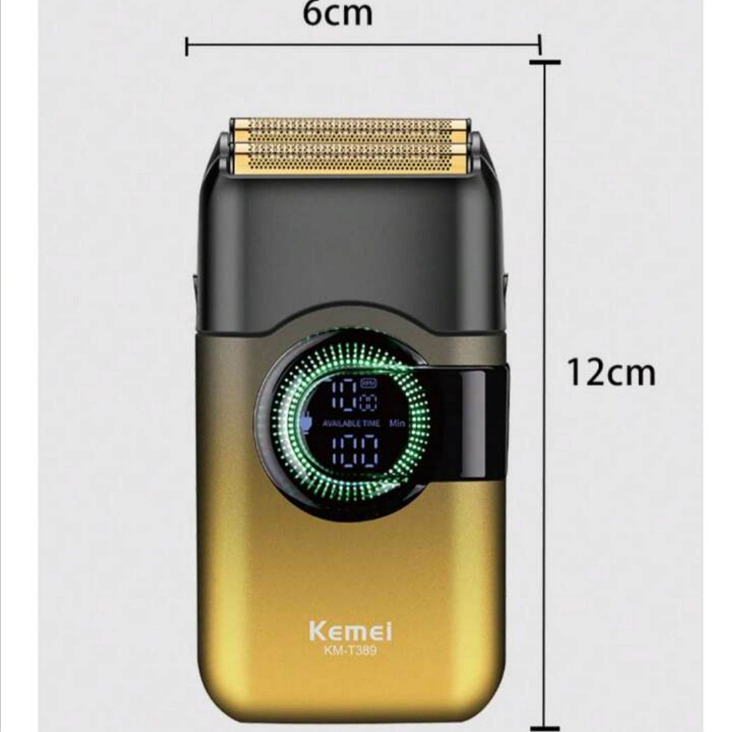 KM-T389 تیغه دقیق، سری رفت و برگشتی دوتایی سازگار با خطوط مختلف صورت، بدون ایجاد فشار برای اصلاح سبک موتور قدرتمند ۷۵۰۰ دور در دقیقه برای تسریع دفع گرما. موتور بادوام با کیفیت بالا، روان کار می‌کند. ریش‌تراش برقی قابل حمل، بدنه ABS کلید روشن/خاموش شبکه برش دقیق صفحه نمایش دیجیتال LED سر برش قابل جدا شدن 800 میلی‌آمپر جنس بدنه: فلز باتری: Li-Ion قدرت: 5 وات ریش‌تراش چرخشی ضد آب IPX5 تعداد تیغه‌ها: تیغه دوقلو منبع تغذیه: برقی، نوع C کاربرد: تجاری، فضای باز، هتل، خانه، دفتر .... ولتاژ: 220-240 ولت گواهینامه CE ROHS زمان شارژ ۲ ساعت استقامت ۱۰۰ دقیقه