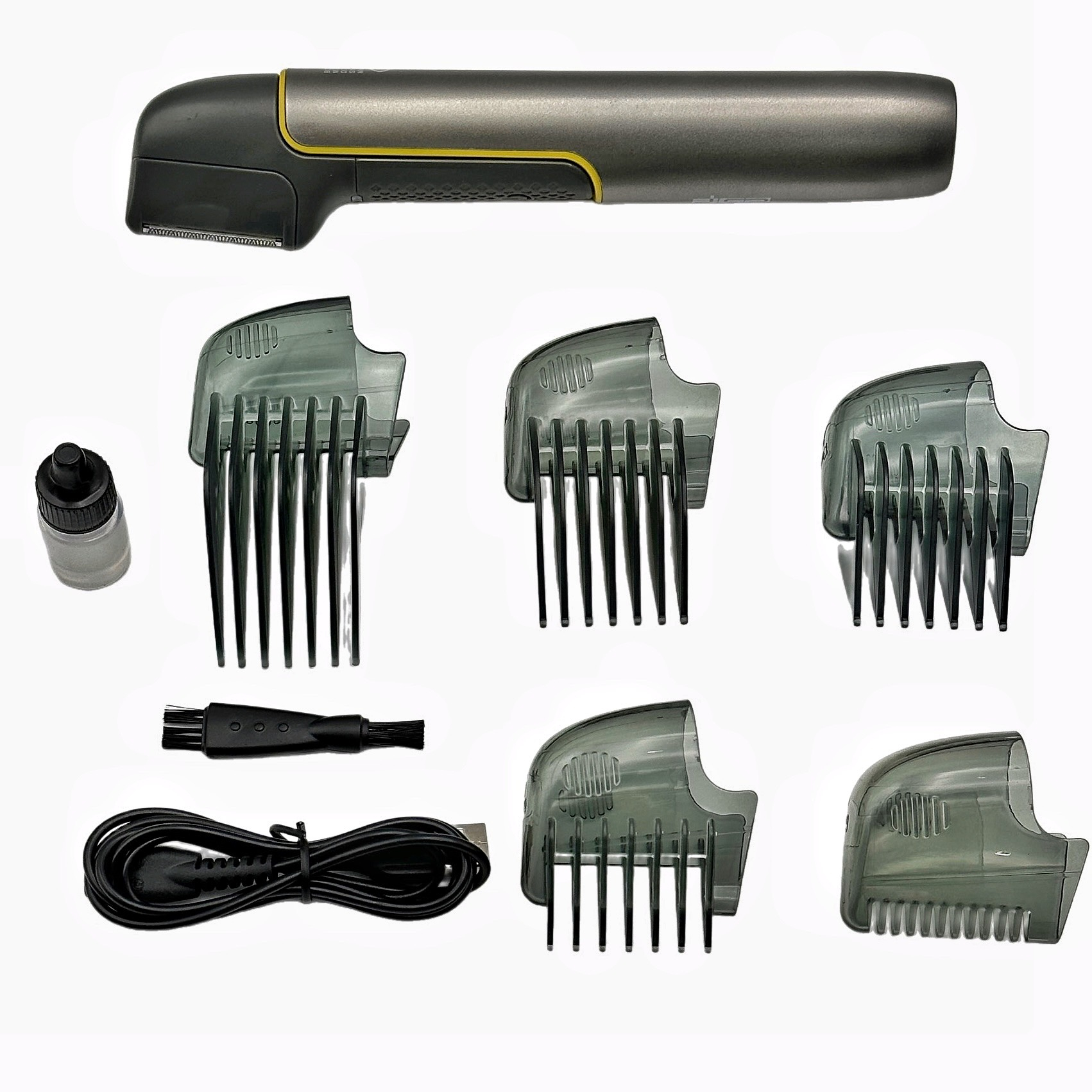 5 عدد شانه شامل: 6 میلی متر و 13 مییمتر و 19 میلیمتر و 25 میلیمتری/ کابل USB 5V 1A / برس تنظیف/ روغن