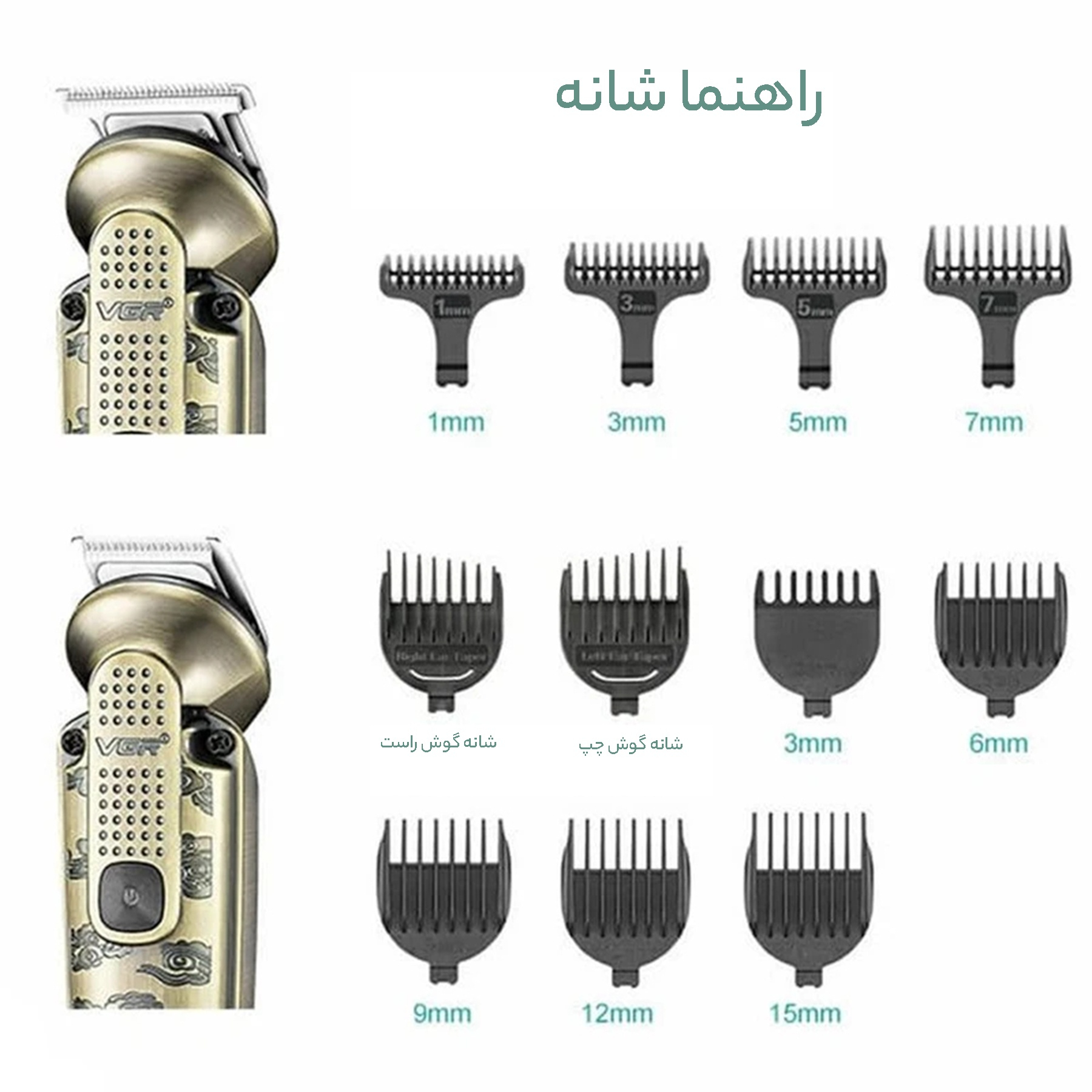 و باز هم وی جی ار با یک مدل شگفت انگیز چیزی که این ماشین اصلاح را خاص میکند داشتن 6 سری مختلف برای هر نقاط بدن که ان را نسبت به مدل های دیگر متفاوت نشون میدهد این مدا که دارای : 4 عدد شانه , برس پاکسازی , روغن , سیم شارژر , 6 عدد شانه , استند نگه دارنده , سری اصلاح ابرو , سری خط زن دقیق , سری خط زن کامل , سری خط زن گوش , سری شیور , سری موزن بینی , کیف نگهدارنده آن را یک ماشین اصلاح فول نشان میدهد
