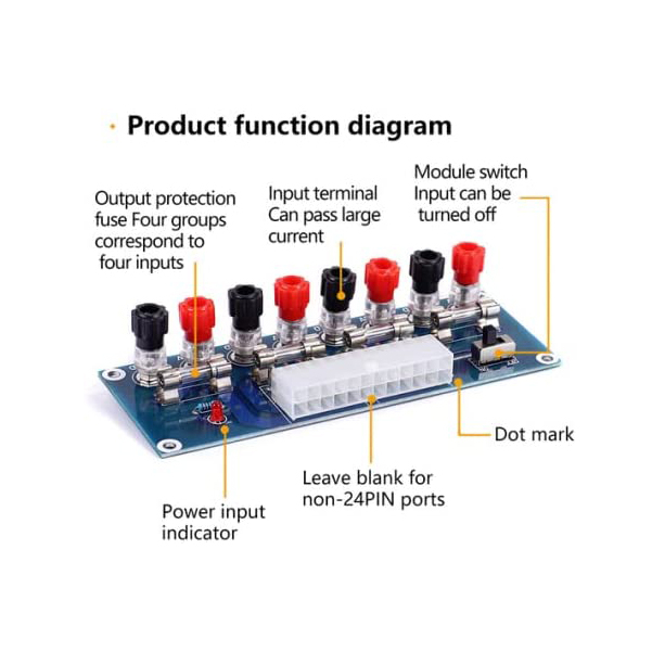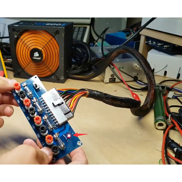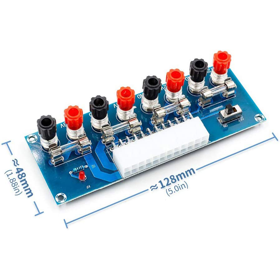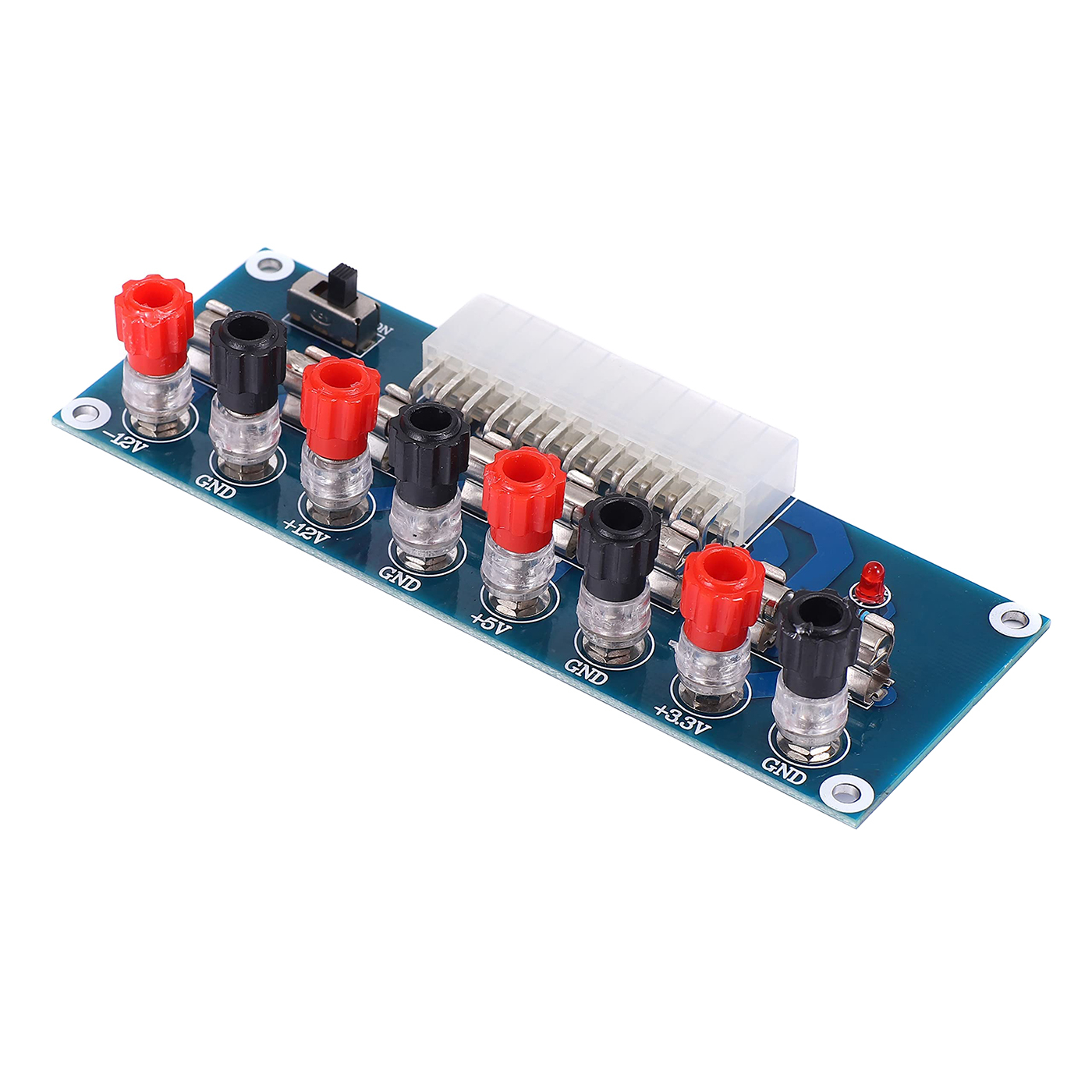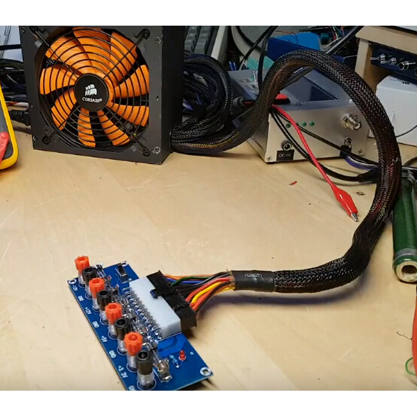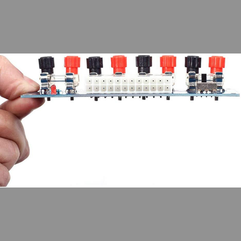 با استفاده از این ماژول، میتوانید از منبع تغذیه ی کامپیوتر به عنوان منبع تغذیه ی آزمایشگاهی استفاده کنید. کافی است کابل برق مادربورد که دارای سوکت 24 پین (معمولا به شکل دو قسمتی 20 + 4 پین) است را به سوکت ورودی مبدل وصل کنید، منبع تغذیه را به برق متصل کرده و کلید مبدل را در حالت روشن قرار دهید. مبدل منبع تغذیه را روشن کرده و ولتاژ های 3.3، 5، مثبت 12 و منفی 12 ولت را در اختیار شما قرار میدهد.