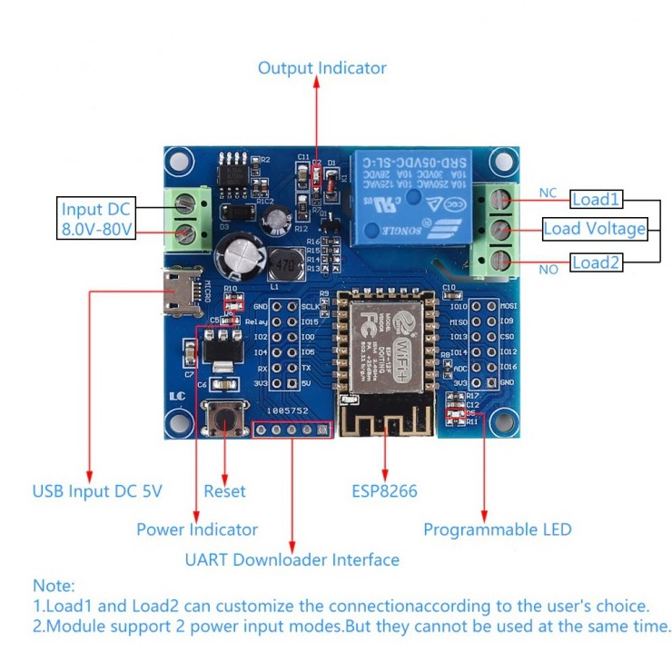 - سایر توضیحاتوایفای داخلی مبتنی بر ESP-12F پورت های I/O قابل استفاده روی برد ولتاژ کاری: DC8-80V/USB5V