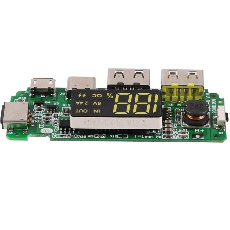 - سایر توضیحاتورودی : 5V-1A رابط ورودی: پورت مادگی میکرو USB و type-c و lightning رابط خروجی: 2× پورت استاندارد مادگی دارای نمایشگر LCD باتری های مجاز برای ماژول: باتری های لیتیومی 18650 با سر فلت یا باتری لیتیوم پلیمری تعداد باتری : 4 تا 6 عدد ، برای باتری 4 سل 110MM و برای باتری 6 سل 146MM بازده BOOST : زیر 1 آمپر جریان با ثبات میباشد و بازده تا 80% میباشد. نرخ ظرفیت : 3.7V / 5V x 80% = 59.2% برای باتری موبایل : ظرفیت باتری موبایل / ظرفیت باتری کل x 59.2% مدار محافظ پلاریته معکوس : ندارد (اتصالات مثبت و منفی با دقت انجام شود.) مدار محافظ overcharge و over discharge برای باتری لیتیومی دارد. مدار محافظ خروجی over current و اتصال کوتاه دارد. ابعاد برد: 65x25mm
