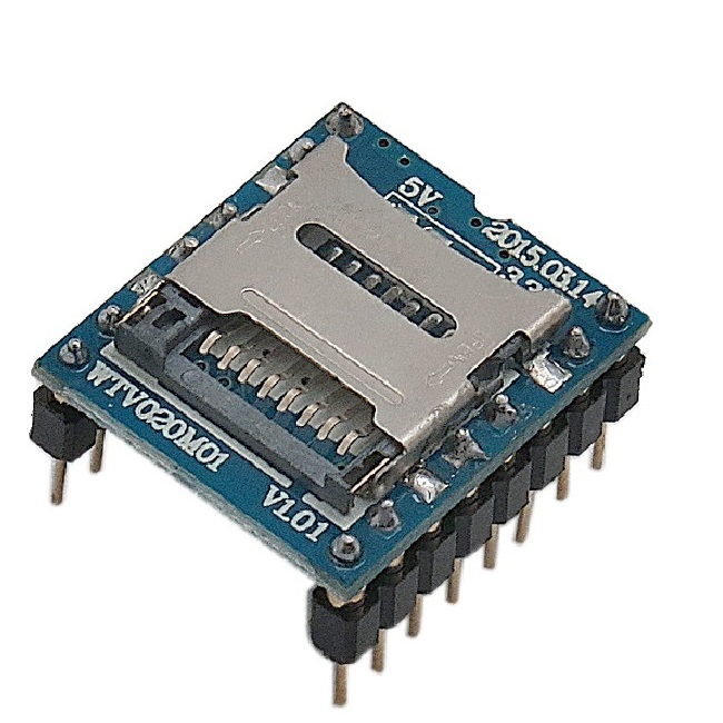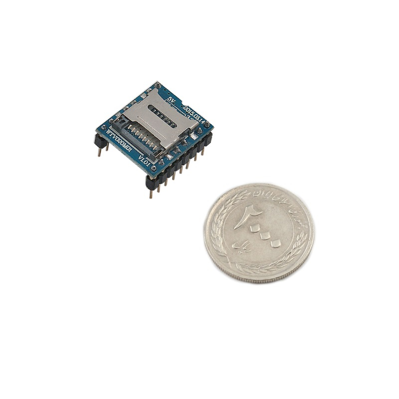 ماژول WTV020-SD یک ماژول پخش فایل صوتی با عملکرد ساده و قیمت مناسب است که برای پخش فایلهای صوتی و موسیقی در پروژههای مختلف کاربرد دارد. این ماژول میتواند بدون نیاز به برد آردوینو یا میکروکنترلر خارجی، فایلهای صوتی ذخیره شده در کارت SD را پخش کند. کیفیت صدای خروجی این ماژول مناسب است و در پروژههای در فضای باز، با اتصال به یک آمپلیفایر، قادر به پخش صدا با کیفیت خوب و در فاصلههای دور میباشد.