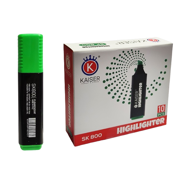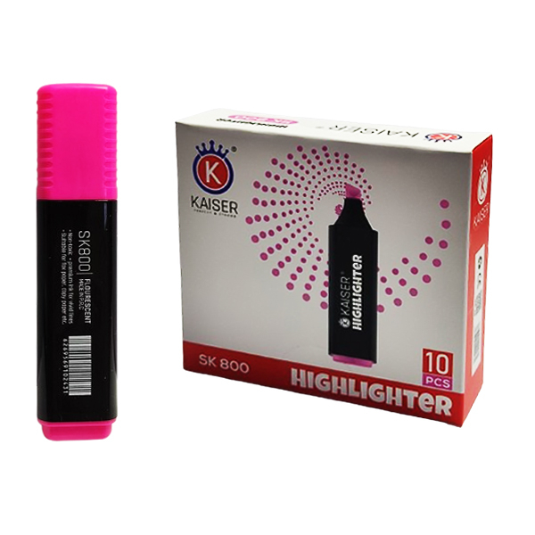 ماژیک علامت گذار کایزر کد SK800 با کیفیت و رد شفاف – دارای بدنه‌ی ارگونومیک هم‌رنگ – با گیره‌ی پلاستیکی برای حمل در جیب طول هر ماژیک : 11/5 سانتی متر -هر بسته ۱۰ عدد ماژیک همرنگ موجود می باشد.