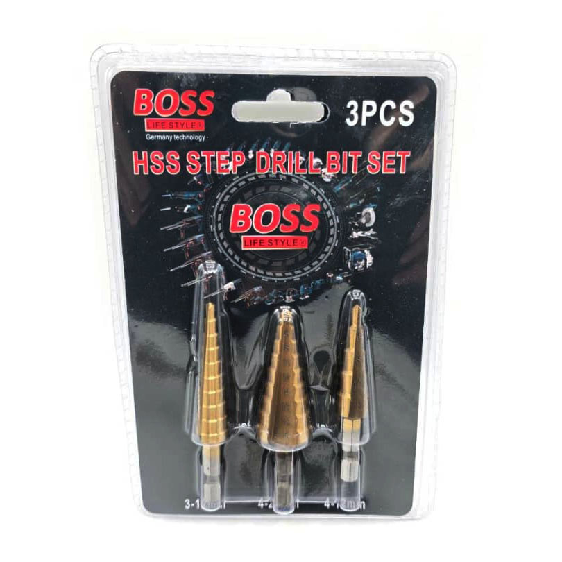 مته پلهای باس که توسط شرکت معتبر BOSS ارائه میگردد جایگزین مناسبی برای سوراخ کاری ورقها به جای متههای معمولی هستند. این مجموعه ساخت چین بوده است. مجموعه فوق شامل 3 عدد مته پلهای در سایزهای ۴ تا ۱۲ میلیمتر و۴ تا ۲۰ میلیمتر و۴ تا ۱۲ میلیمتر می باشد و قابلیت استفاده در سرعت های بالا را دارا می باشد این مجموعه که بصورت اورجینال توسط ایران باس توزیع میگردد از جنس فولاد تند بر HSS و از روکش تیتانیوم برخوردار بوده و قابلیت سوراخ کاری روی برنج، مس، آلومینیوم، چوب و پلاستیک را دارد. البته باید در نظر داشته باشید که عمق هر پله تنها 5 میلیمتر است. پس حتی در نرمترین مواد مانند چوب یا پلاستیک هم نمیتوان بیش از ضخامت 5 میلیمتر را سوراخ کرد. در قطعات سختتر هم حداکثر ضخامت 3 تا 4 میلیمتر پیشنهاد میگردد. و نکته آخر اینکه با به کار بردن آب صابون یا سایر مواد خنک کننده هنگام کار، عمر ابزار را نیز افزایش خواهید داد.