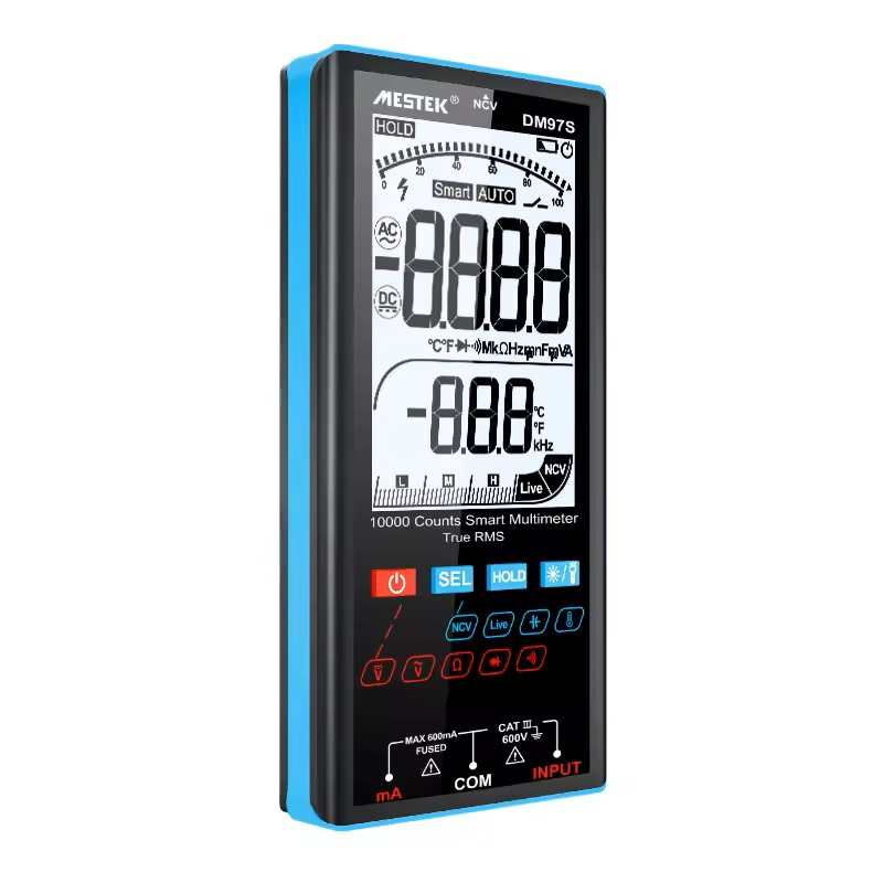 شرکت شنزن مستک تولز یکی برترین تولید کنندگاه ابزار آلات اندازه گیری دقیق با 15 سال سابقه در کشور چین میباشد . محصولات این شرکت شامل محصولات اندازه گیری الکترونیک، صنعت صدا و نور، سنجش حرارت، اپتیک و فاصله سنج های لیزی و هچنین دوربین های تصویری میباشد مولتی متر دیجیتالی مستک مدل DM97S یک مولتیمتر هوشمند با صفحه نمایش رنگی و بزرگ 10000 شمارشی میباشد که قابلیت اندازه گیری ولتاژ DC به میزان 600 ولت, ولتاژ متناوب به میزان 600 ولت, جریانDC به میزان 600 میلی آمپر, جریانAC به میزان 600 میلی آمپر, مقاومت: 0-100MΩ , ظرفیت: 100nF-100Mf و فرکانس: 40-400 هرتز را دارد.همچنین این دستگاه قابلیت ذخیره کردن اطلاعات را نیز دارد.این دستگاه توسط شرکت پژواک کالای نوین ایرانیان وارد شده است. اگر بخواهیم شما را با مشخصات فنی مولتی متر دیجیتال اتو رنج DM97S آشنا کنیم باید گفت که این مولتی متر به عنوان یک ابزار اندازه گیری چند منظوره به شما این امکان را میدهد تا بتوانید اقدام به اندازه گیری ولتاژ، جریان، مقاومت، ظرفیت، دیود و فرکانس قطعات مختلف کنید.