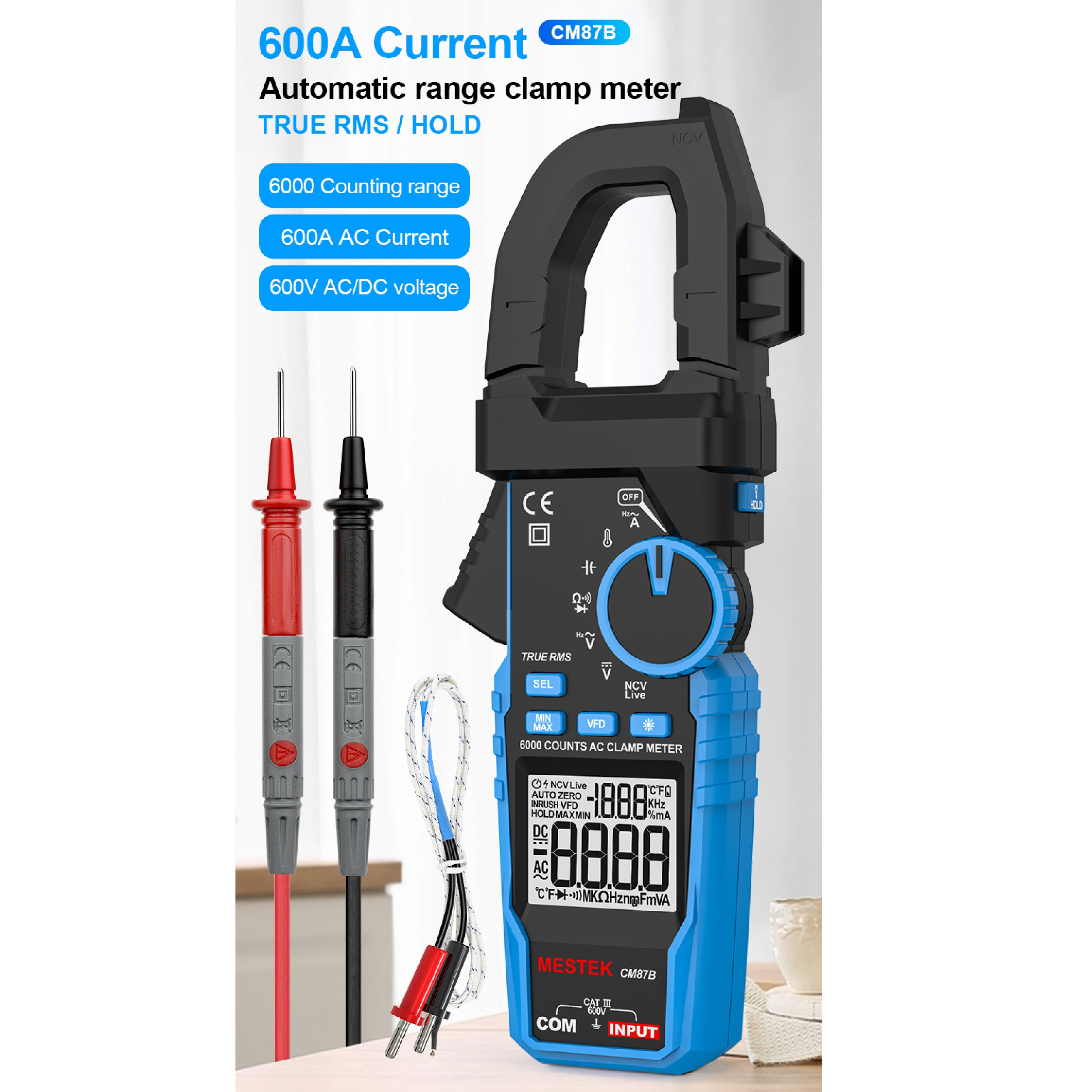 مولتی متر کلمپی دیجیتال مدل CM87B مستک یک ابزار اندازه‌گیری دقیق و کاربردی است که برای اندازه‌گیری جریان AC تا 600 آمپر، ولتاژ AC/DC، مقاومت و تست پیوستگی به‌کار می‌رود. این دستگاه با طراحی True RMS و قابلیت تشخیص ولتاژ غیرتماسی (NCV) انتخابی مناسب برای برق‌کاران و تکنسین‌های صنعتی است. کاربری آسان، نمایشگر دیجیتال و قابلیت حمل آسان، آن را به ابزاری کاربردی برای تعمیر و نگهداری تأسیسات الکتریکی تبدیل کرده است.