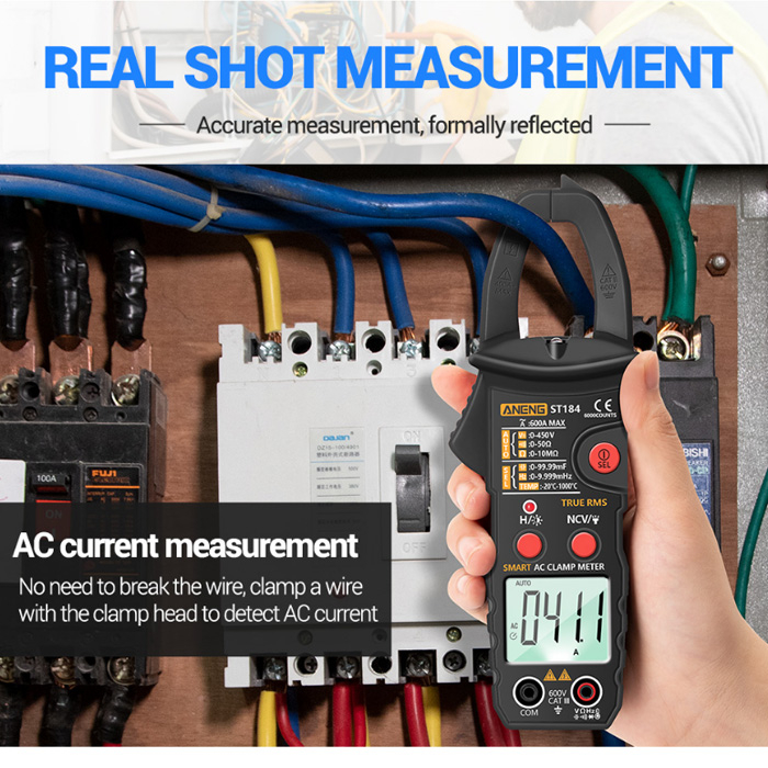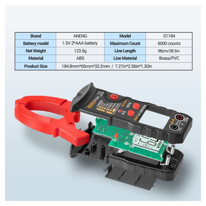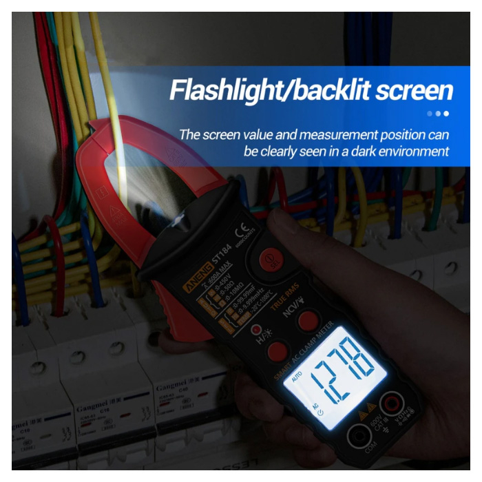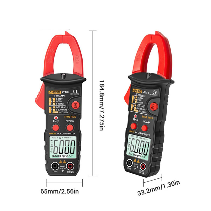 مولتی متر کلمپی دیجیتال ANENG مدل ST184 از کلمپ های نسل جدید دستگاههای اندازه گیری است که تقریبا همه نیازهای یک مهندس برق را برطرف میکند . اندازه گیری دقیق ، کیفیت دستگاه ، کاربردی بودن ، اندازه کوچک و …. ازویژ گیهای بسیار عالی این دستگاه است