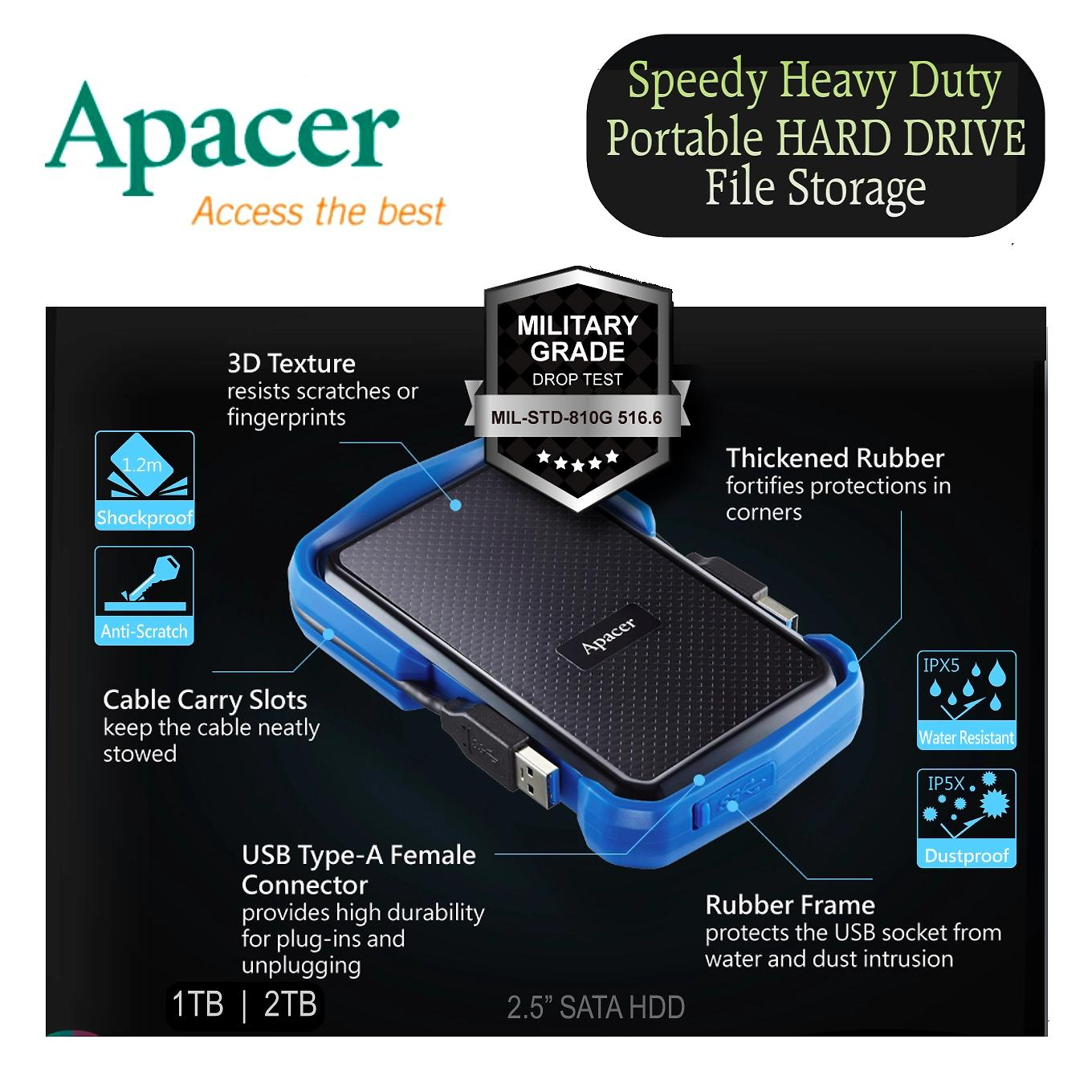 شرکت اپیسر هارد اکسترنال AC631 را به قابلیتهایی تجهیز کرده که به کمک آن این هارد در برابر بسیاری از صدمات بتواند مقاومت خوبی از خود نشان دهد. هارد اکسترنال AC631 میتواند در برابر لرزش مقاومت خوبی از خود نشان دهد. یکی از مشکلاتی که برای بسیاری از هاردهای اکسترنال پیش می آید، بدسکتورهای سخت افزاری است که براثر ایجاد تکانهای شدید در هارد صورت میگیرد. هارد AC631 به دلیل آنکه در برابر لرزش مقاوم است، در برابر این مشکلات ایمن خواهد بود و نگرانی برای از دست رفتن اطلاعات برای کاربر وجود نخواهد داشت. همچنین این محصول در برابر شوک هم میتواند مقاوم باشد. حتی اگر هارد اکسترنال AC631 از فاصلهی 1.2 متری رها شود، مشکلی برای آن به وجود نخواهد آمد. این موضوع به دلیل با موفقیت پشت سرگذاشتن تستهای نظامی MIL-STD-810G 516.6 Procedure IV است.