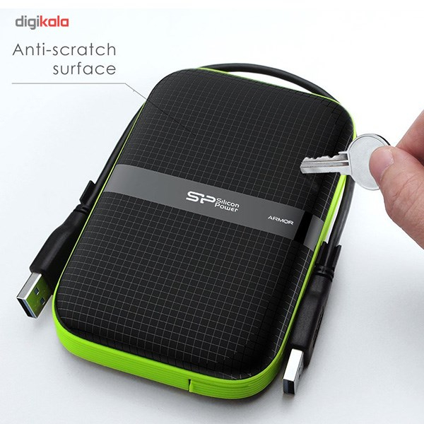 هارد اکسترنال Armor A60 سیلیکون پاور، استحکام سری آرمور را به ارث برده است و مشخصاتی مورد انتظار را ارائه میدهد. این هارد دارای یک بدنه فوقالعاده محکم از جنس پلاستیک فشرده است و یک سیستم تعلیق داخلی، آن را در برابر آسیبهای فیزیکی مانند ضربه، آب، شوک، لغزش، خط و خش و گرد و غبار مقاوم میکند. برای تقویت و استحکام این محصول در برابر انواع ضربه، بدنه آن از ساختاری بسیار محکم ساخته شده و به همین دلیل موفق به پشت سر گذاشتن تست ضربه MIL-STD-810G ارتش ایالات متحده آمریکا و همچنین دریافت استاندارد IPX4 شدهاست. این استاندارد، نشاندهندهی مقاومت در برابر آب است و به مصرفکننده اطمینان میدهد که Armor A60 تا عمق و زمان مشخصی نسبت به نفوذ آب مقاوم است. عنوان محکمترین محافظ داده برای کاربرانی که دائم در حال حرکت و جنب و جوش هستند هم به Armor A60 اختصاص یافتهاست. علاوه بر اینهاArmor A6 از رابط پرسرعت USB 3.0 بهره میبرد که قابلیت انتقال واقعاً سریع دادهها را برای شما فراهم میکند و باعث صرفهجویی در وقت و زمان شما میشود.