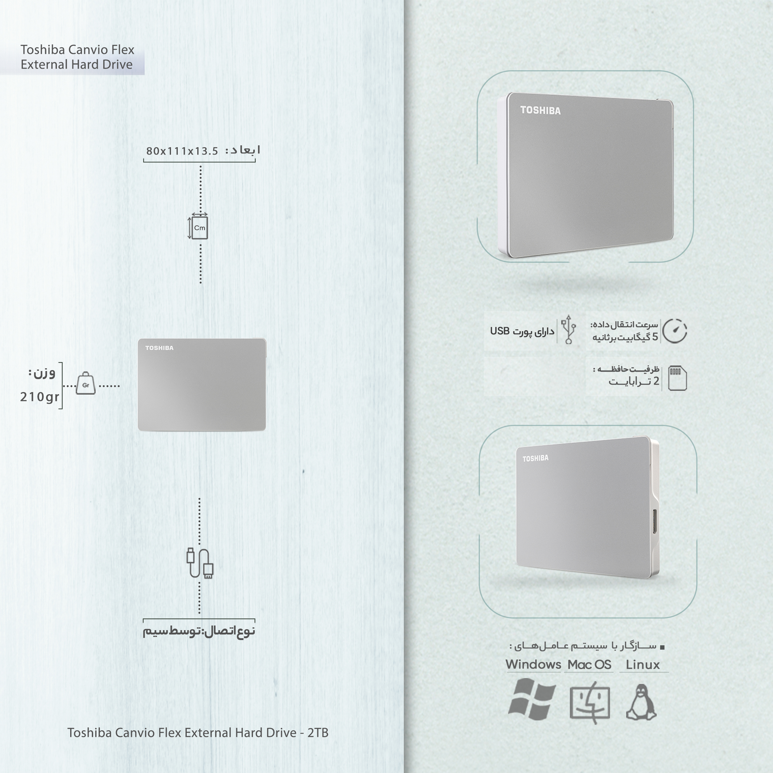 هارد دیسک اکسترنال توشیبا مدل Canvio Flex ظرفیت 2 ترابایت