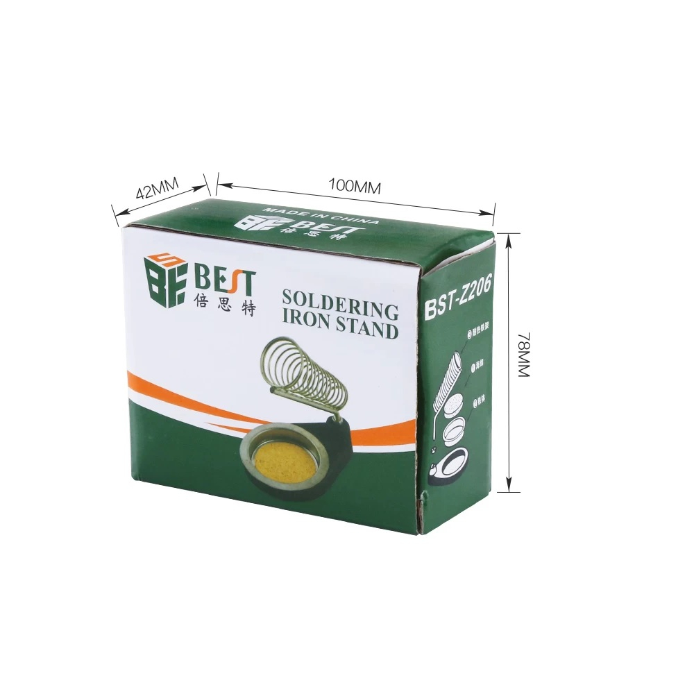 پایه هویه بست مدل BST-Z206 یک ابزار کاربردی برای نگهداری ایمن هویه‌های قلمی و تفنگی در حین و پس از لحیم‌کاری است. این پایه با بدنه فلزی مقاوم و روکش لعاب‌دار، از سوختگی سطح کار یا آسیب به هویه جلوگیری می‌کند. طراحی شامل یک فنر نگهدارنده دوکی‌شکل برای قرارگیری هویه و یک پایه چدنی سنگین برای استحکام است. همچنین، جایگاه اسفنج تمیزکننده نوک هویه برای سهولت در تمیزکاری فراهم شده است.
