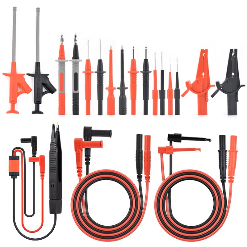 4 عدد Test Lead و 2 عدد Test Hook و 2 عدد Testing Clamp Hook و 1 عدد SMD Patch Test Clip و 12 عدد Test probe