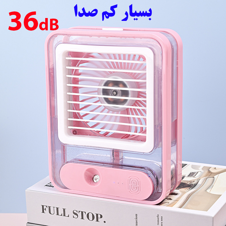 در روزهای گرمای تابستان یکی از ضروری ترین وسایلی که بر روی میز کار و مطالعه خود نیاز دارید، پنکه رومیزی است. این پنکه‌ها با خنک کردن شما در روزهای گرم تابستان، کار و مطالعه را برای شما بسیار لذت‌بخش‌تر خواهند کرد. پنکه مدل Spray یک پنکه دو منظوره است که علاوه بر خنک کردن شما، رطوبت محیط را نیز برای شما تنظیم میکند. این محصول با داشتن یک مخزن حدودا 200 میلی‌لیتری نقش یک رطوبت‌ساز را نیز برای شما ایفا خواهد کرد. مخزن آب دستگاه به آسانی از بالای محصول پُر میشود و نیازی به باز کردن مخزن نیست. این پنکه با داشتن قابلیت رطوبت‌ساز، باد خنک‌تری در گرمای تابستان برای شما تولید میکند. این محصول با داشتن باتری با ظرفیت 2400 میلی آمپر، قابلیت شارژدهی تا 6 ساعت را دارد و درگاه شارژ آن نیز از نوع Type-C است. قدرت باد این محصول بسیار فوق‌العاده است و سه حالت مختلف سرعت باد دارد که با هر بار فشردن دکمه، سرعت باد افزایش می‌یابد. جهت وزش باد در این پنکه از طریق تنظیم دریچه خروجی باد قابل تنظیم است. موتور این محصول از نوع Brushless است و علاوه بر ارائه دادن سرعت، گشتاور و بهره‌وری بالاتر، مصرف انرژی کمتری دارد و از این طریق شارژدهی و طول عمر باتری را افزایش میدهد. همچنین این محصول دارای یک چراغ اتمسفری هفت رنگ است که هم قابل استفاده به عنوان چراغ‌خواب است و هم زیبایی فوق‌العاده‌ای به محصول میبخشد. دکمه این محصول از نوع لمسی است که یک دکمه چند منظوره است. روشن/ خاموش کردن پنکه با لمس کوتاه دکمه اتفاق می‌افتد و برای خاموش/روشن کردن رطوبت‌ساز باید دکمه را لمس و برای 2 ثانیه نگه دارید و برای روشن/خاموش شدن چراغ اتمسفری دکمه را دو بار سریع لمس کنید.