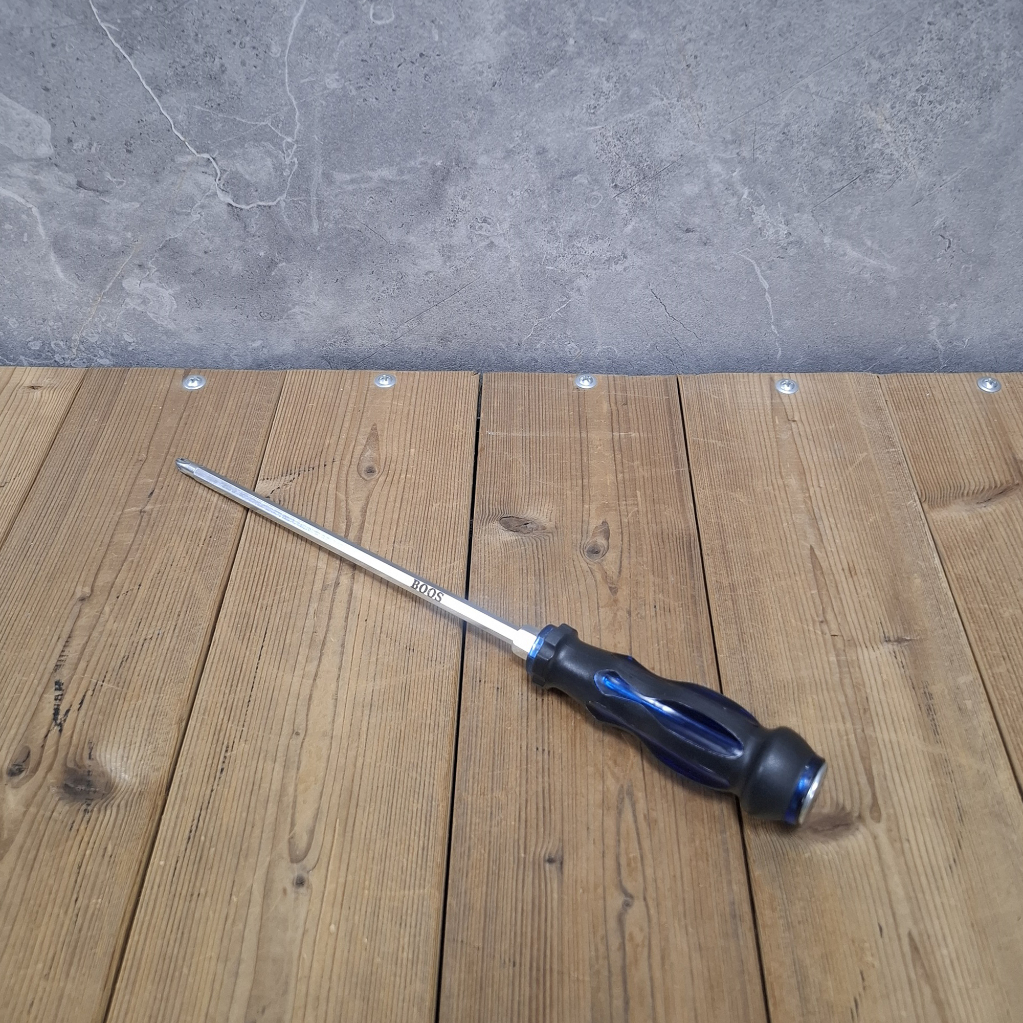 پیچ گوشتی یکسر دوسو و یکسر چهار سو با طول ۲۵۰ MM با روکش کروم وانادیوم با قابلیت کوبش پذیری از کیفیت عالی برخوردار است