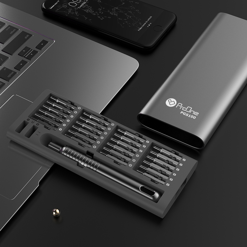 شرکت پرووان که در زمینه های مختلفی نیز فعالیت دارد و محصولات متنوعی نیز تولید می کند. پیچ گوشتی همه کاره PGS100 که یکی از محصولات با کیفیت این کمپانی است. این محصول یک دسته‌ی پیچ‌گوشتی دارد که در عین ظرافت در تولید و طراحی از دوام و مقاومت بسیار خوبی نیز برخوردار است. این دسته از روکش ضد زنگ بهره می‌برد و برای کارهای مختلفی از جمله تعمیرات عینک، محصولات الکترونیکی، اسباب‌بازی، تلفن، لپ‌تاپ، موبایل و غیره مورد استفاده قرار می‌گیرد. سری های پیچ گوشتی این محصول از آلیاژ آلومینیوم ساخته شده و دارای حالت مغناطیسی است تا پیچ‌های کوچک را جذب کرده و از گم شدن آن‌ها جلوگیری کند. دسته‌ی پیچ‌گوشتی این مجموعه نیز از آلیاژ آلومینیوم ساخته شده و در تولید آن از فناوری اکسیداسیون آنودایز استفاده شده تا دوام و مقاومت بسیار خوبی در برابر ضربه و خوردگی داشته باشد. این سری‌ها با قابلیت آهن‌ربایی با استفاده از فولاد و تراش‌کاری لیزری تولید شده‌اند. دقت بسیار بالا در تولید این سری‌ها منجر به تولید محصول بسیار با کیفیت شده است. میزان مقاومت بسیار بالا در برابر سایش و خوردگی را می‌توان هنگام کار با آن‌ها تجربه کرد. این مجموعه در یک کاور با جنس آلیاژ آلومینیوم قرار دارد. داخل این کاور به 4 قسمت تقسیم شده و سری‌های مختلف پیچ‌گوشتی با کاربردهای گسترده در جای مشخص قرار دارند. پردازش ریخته‌گری یک‌پارچه در تولید این کاور سبب ایجاد قوس‌های بسیار چشم‌نواز و مدرن در ساختار آن شده است. این کاور خوش‌ساخت در برابر ضربه و خوردگی مقاومت بسیار خوبی دارد. گفتنی است این کاور به صورت کشویی بوده و دسترسی بسیاری آسانی به تمامی سری‌های پیچ‌گوشتی خواهید داشت.