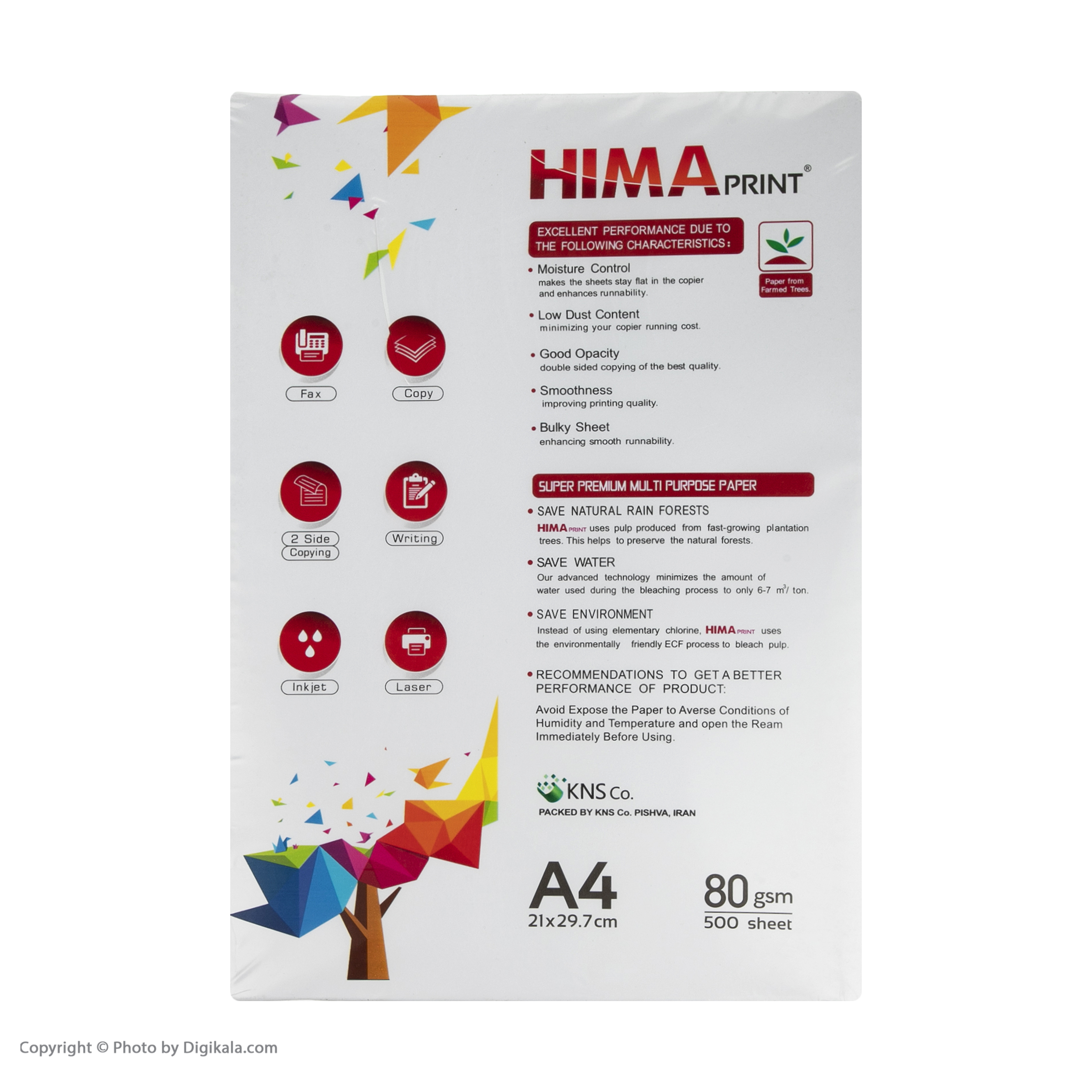 این مدل برای استفاده در دستگاه‌های کپی و پرینت هم مناسب است و عملکرد خوبی را از خود نشان می‌دهد. ضخامت و به هم پیوستگی کاغذ تحریر a4 طوری است که استفاده از آن راحت است و به راحتی دچار آسیب یا تا خوردگی نمی‌شود. علاوه بر این‌ها کاغذ A4 هیما بسته 500 عددی سطح خوبی هم برای پرینت دارد که کمک می‌کند جوهر مورد استفاده روی آن راحت و به سرعت خشک شود و اثری از پخش شدن و سایه انداختن روی کاغذ نخواهیم دید. همچنین این کاغذ گرد و خاک را جذب نمی‌کند و سطحش به اندازه کافی صاف و صیقلی است.