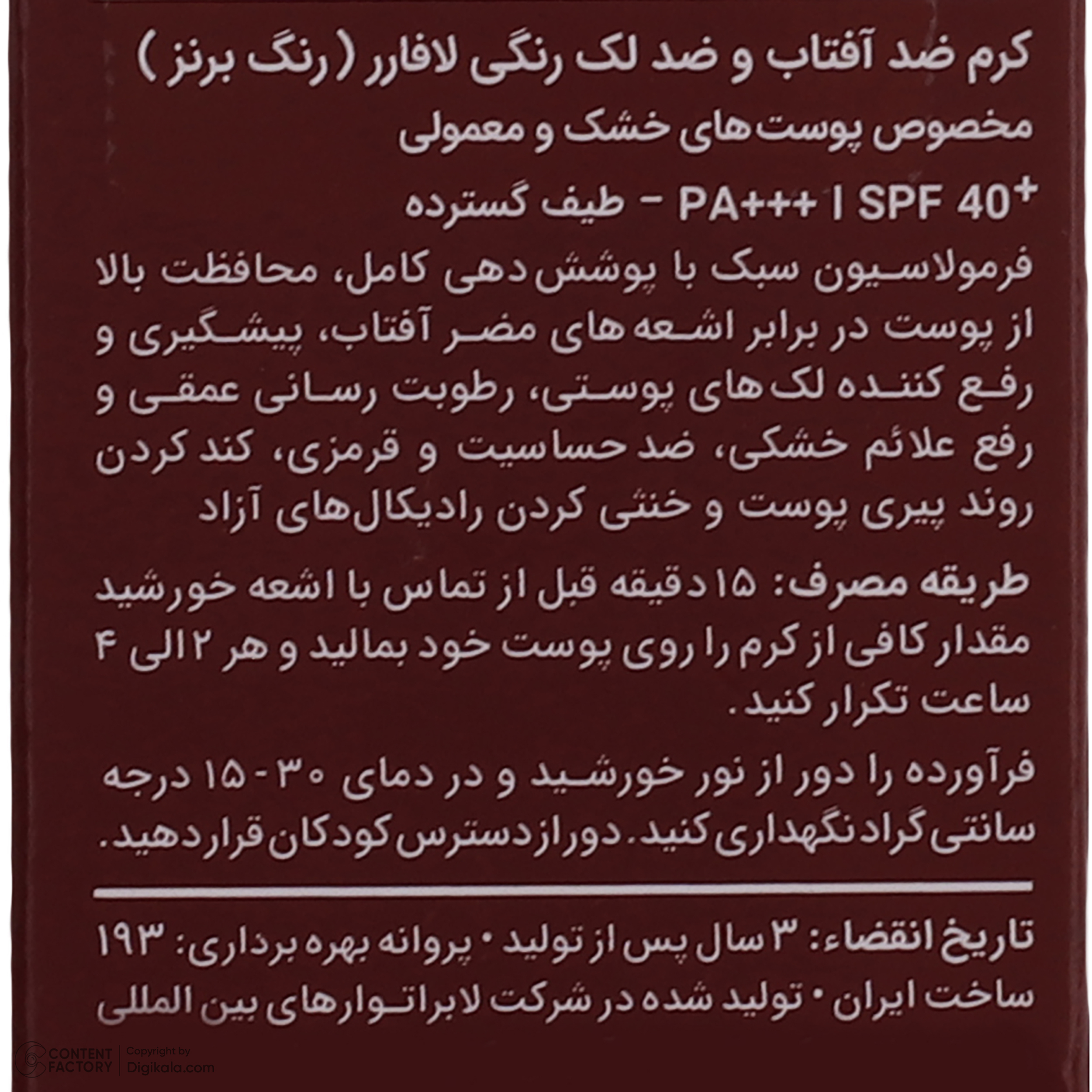 معرفی کرم ضد آفتاب رنگی لافارر مدل SPF40 مناسب انواع پوست