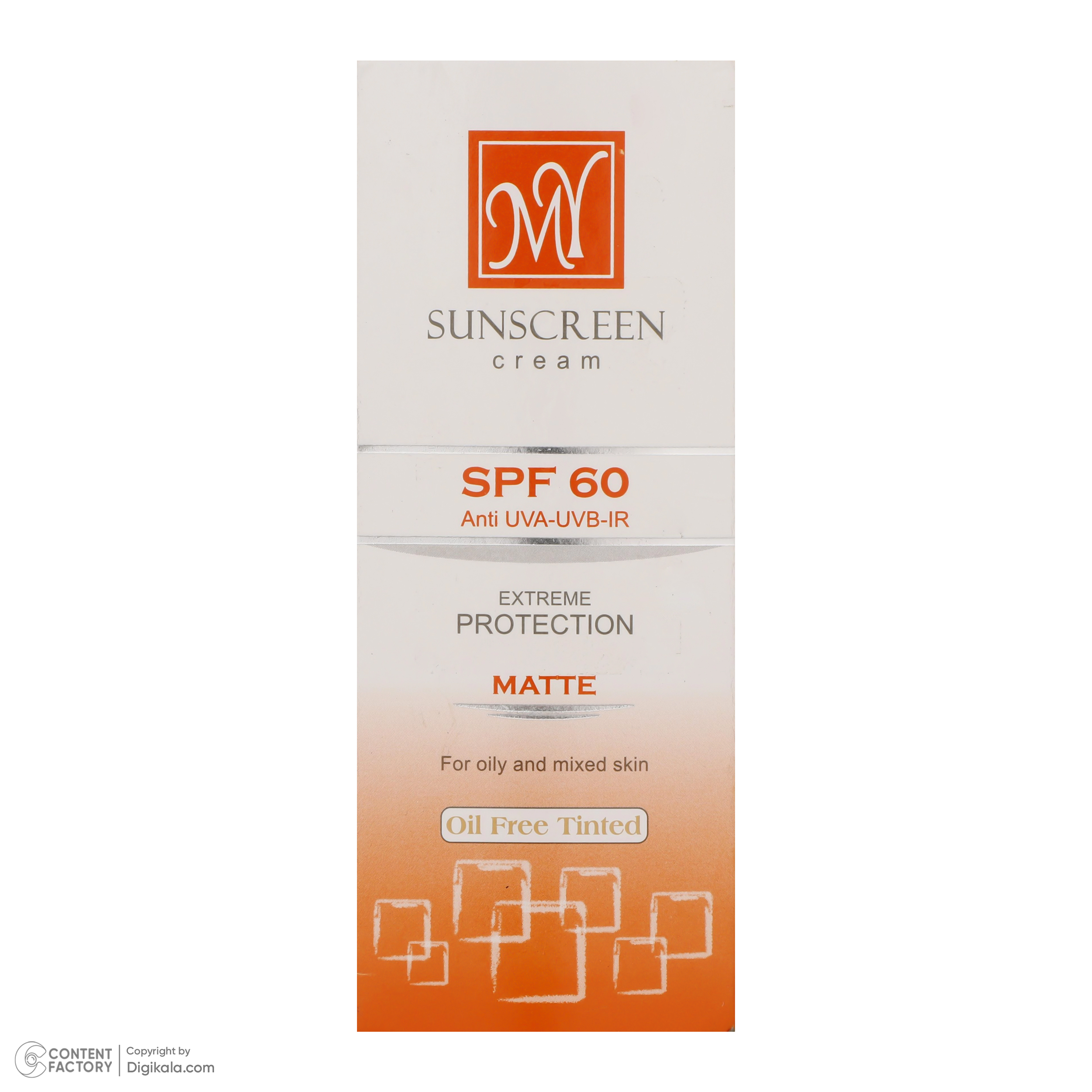 کرم ضد آفتاب رنگی مای مدل SPF60 مناسب پوست های چرب و مختلط