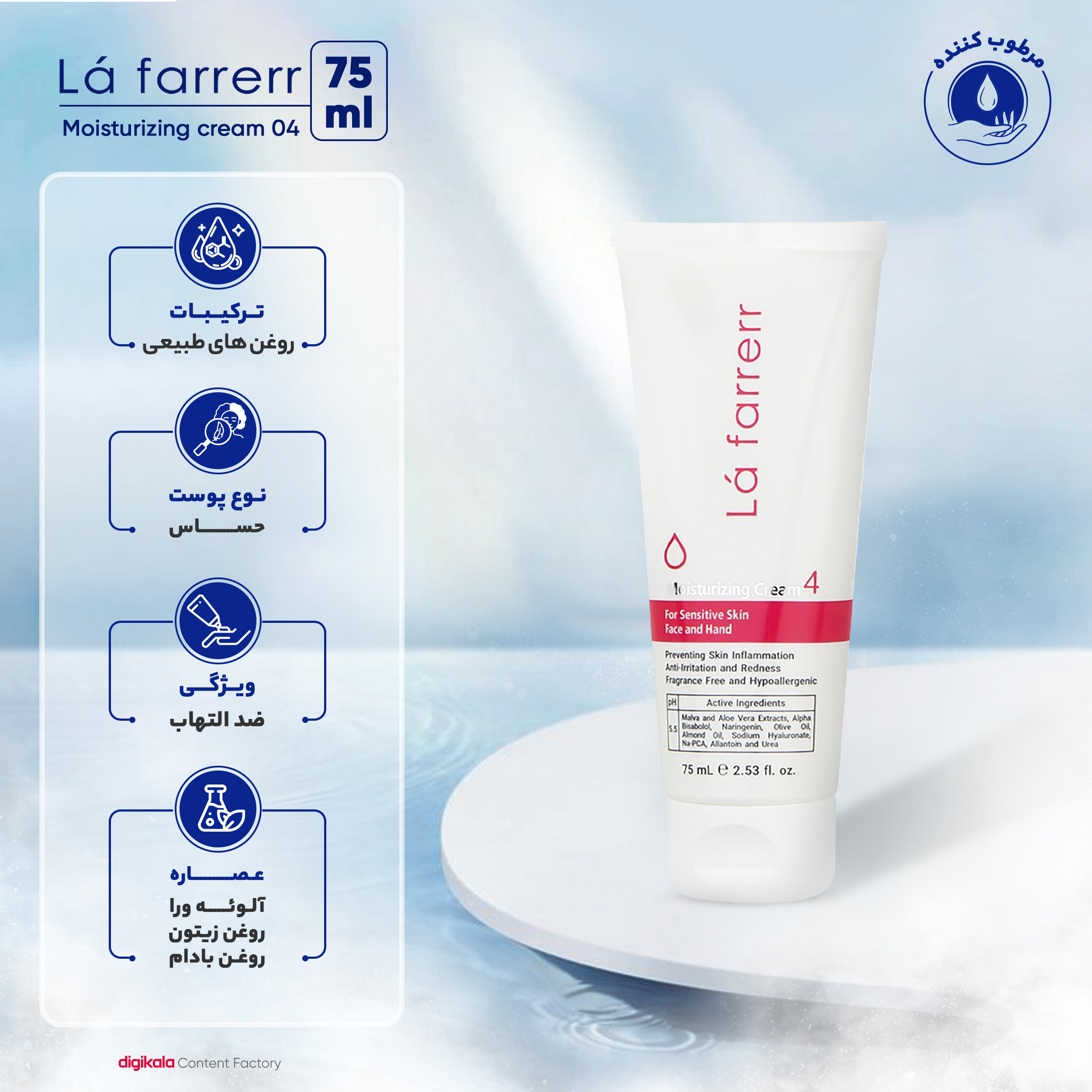 کرم مرطوب‌کننده و آبرسان دست و صورت لافارر مدل 04 مناسب پوست‌های حساس حجم 75 میلی‌لیتر
