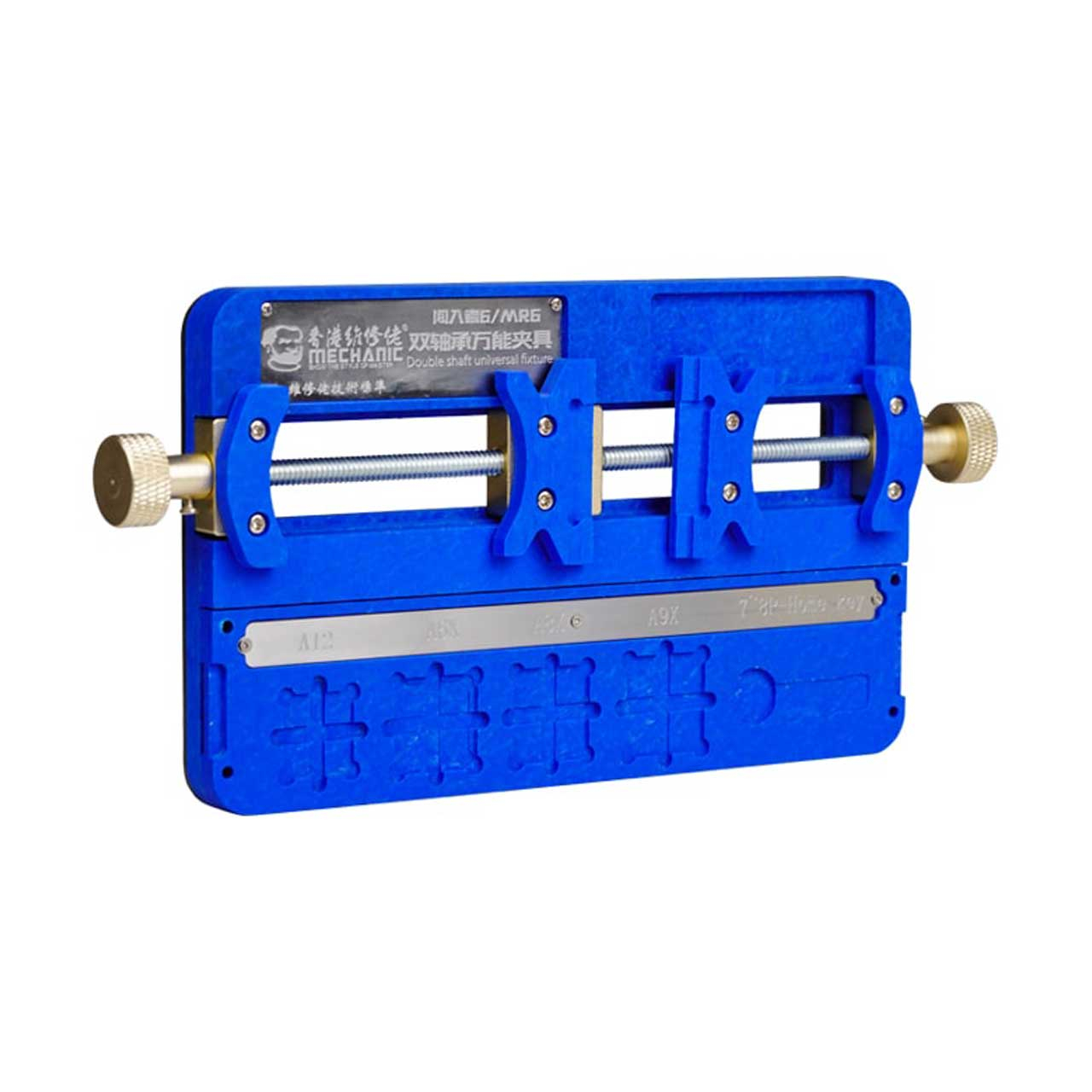 - سایر توضیحاتگیره برد حرفه ای نسوز مکانیک Mechanic MR6 ● گیره نگهدارنده همهکاره انواع برد و آیسی موبایل ● دارای دو عدد فک آیسی که به صورت مجزا قابل تنظیم هستند ● سایز فک ها در بازترین حالت: 4.3 سانتیمتر ● سایز فک ها در حالت بسته: 0 میلیمتر - قابلیت گرفتن آیسی های کوچک را نیز دارد ● قابلیت نگهداری و کار بر روی انواع برد همچنین آیسیهای کوچک و بزرگ ● دارای 10 عدد قالب آیسی جداشونده از روی برد اصلی ● دارای قالبهای آیسی سیپییو: A8 - A9 - A10 - A11 - A12 - A13 - A14 - A15 ● دارای قالبهای آیسی هارد: PCIE - NAND ●دارای قالب فینگر پرینت آیفون مدلهای: iphone 7 _ 7plus _ iphone 8 _ 8 plus ● دارای قسمت نگهداری آیسی روی بدنه به ابعاد: طول 5.1 سانتیمتر × عرض 1.8 سانتیمتر × عمق 2 میلیمتر ● دارای پایه فولادی مقاوم و رویه نسوز با کیفیت ● ابعاد گیره: طول 15 سانتیمتر × عرض 9 سانتیمتر × ارتفاع 2 سانتیمتر ● وزن (بدون جعبه) 410 گرم ● وزن (با جعبه) 463 گرم