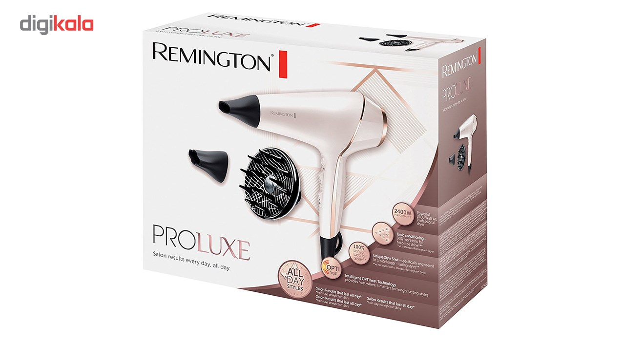 سشوار «رمینگتون» مدل «AC9140» با عنوان Pro Lux هم شناخته میشود. این نامگذاری به این دلیل است که این سشوار از نوع حرفهای بوده و برای استفاده در سالنهای زیبایی بسیار مناسب است. مدل AC9140 به موتور AC بسیار قدرتمند با توان 2400 وات مجهز است. این مدل همچنین قابلیت تولید یون منفی نیز دارد. درواقع از فناوری خاصی برای این منظور استفاده شده است که باعث میشود سشوار تا 90درصد نسبت به سشوارهای معمولی یون منفی بیشتری تولید کرده و از وزشدن موها جلوگیری کند. همراه با این دستگاه دو عدد سری متمرکزکننده و یک عدد سری دیسپانسر نیز ارائه میشود که برای مدلدادن به موها و خشککردن موهای فر بسیار کاربردی هستند. طول سیم مدل AC9140 سه متر است که آزادی عمل زیادی به کاربر میدهد. از طرف دیگر برای آن حلقهی آویز هم در نظر گرفته شده است که در سالنهای زیبایی کاربرد زیادی دارد و از شلوغ و بههمریخته شدن میز آرایشگر جلوگیری میکند. به این صورت سشوار روی آویز قرار میگیرد و جلوی دست و پای آرایشگر نیست. از دیگر قابلیتهای این دستگاه میتوان به سیستم OptiHeat اشاره کرد که باعث میشود گرما به صورت هوشمند روی موها پخش شود. فناوری دیگری با نام Pro Style Shot نیز در این دستگاه به کار رفته که در واقع همان تقویتکنندهی توربو است و باعث میشود سشوار از حداکثر قدرت موتور بهرهمند شود. این قابلیت برای مدلدادن به موها بسیار مفید است و باعث میشود حالت موها برای مدت بیشتری حفظ شود.