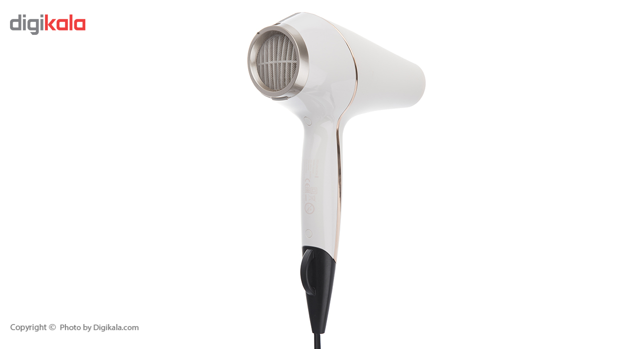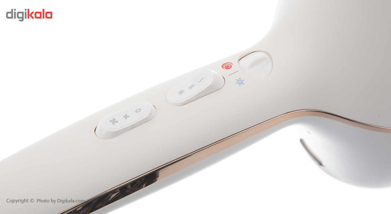 در طراحی مدل AC9140 مبانی ارگونومیک کاملا رعایت شدهاند؛ ازاینرو بهخوبی در دست جای میگیرد و استفادهی طولانیمدت از آن باعث خستهشدن دست نمیشود. دکمههای تنظیم باد و دمای سشوار مثل اکثر سشوارهای استاندارد روی دسته تعبیه شدهاند. بالای این دو، کلید باد سرد و حالت توربو یا Style Shot قرار دارد. استفاده از این دو حالت حین سشوارکردن موها بسیار ساده است؛ چون دکمههای آن دقیقا جایی قرار میگیرد که برای دست تعبیه شده است. فیلتر دستگاه هم که پشت آن قرار دارد، قابلیت جداشدن دارد؛ ازاینرو تمیزکردن آن بسیار آسان است. بدنهی سشوار به رنگ سفید صدفی است و روی آن شیارهای به رنگ رزگلد کار شده که ظاهری بسیار شیک و زیبا به سشوار داده است.