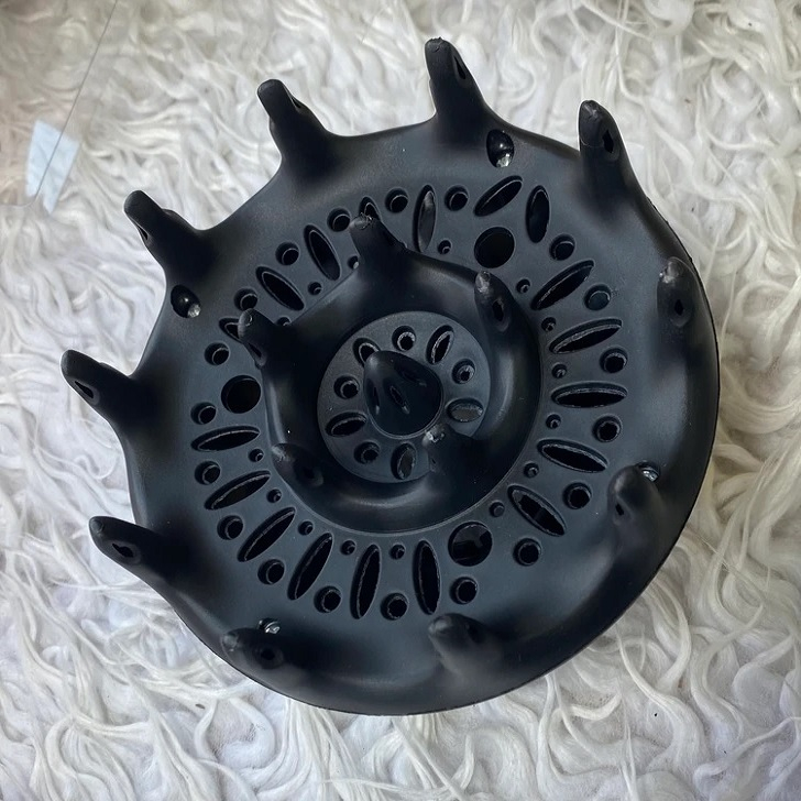 دیسپانسر یک وسیله کمکی برای موهای فر و مواج است. افرادی که موهای فر دارند میتوانند برای خشک کردن موها پس از استحمام از این وسیله ساده و کاربردی استفاده کنند. دیسپانسر در انواع متفاوتی تولید شده که از نظر جنس و شکل ظاهری تفاوت دارند. کارایی همه دیسپانسرها یکی است و تنوع ظاهری، در کارکرد آن تفاوتی ایجاد نمیکند. این وسیله نوعی افزونه است که بر روی سشوار فیکس میشود. در واقع خود دیسپانسر به تنهایی کاری انجام نمیدهد. این وسیله دارای موتور یا پروانه نیست. درست شبیه به سرهای مختلف به ابلیس، این سری پلاستیکی را نیز میتوان روی سشوار، نصب کرد. دیسپانسر باد گرم سشوار را به موها انتقال میدهد. سطح مقطع دیسپانسر مو بزرگ است و هر بار ابعاد مشخصی از مو را در بر میگیرد. هم خانمها و هم آقایان میتوانند از این وسیله برای خشک کردن موها استفاده کنند. افرادی که موهای حجیم و پر پشت و فر دارند بیشترین استفاده را از این محصول میبرند. موهای فر از لحاظ ضخامت و جنس، با موهای صاف و لخت تفاوت دارد. خشک کردن موی فر با سشوار موجب وز شدن و پف کردن مو میشود. اما استفاده از دیسپانسر این مزیت را دارد که بدون آسیب به مو، مقدار زیادی از “وزی” را میگیرد. به این ترتیب موها بدون اینکه حالت خود را از دست بدهند یا صاف شوند، به شکل زیباتری حالت میگیرند. نحوه اثرگذاری دفیوژر ها به این صورت است که دور حلقه مو، هوا را به جریان میاندازند. به این ترتیب همانطور که موها در هوای آزاد خشک میشود، با استفاده از دیسپانسر هم، خشک خواهد شد. این موقعیت با استفاده از سشوار به طور مستقیم تفاوت دارد. اگر موهای فر را با سشوار خشک کنید موها حالت وز میشود ولی با دفیوژر داغی به طور مستقیم روی موها اعمال نمیشود. تفاوت دیسپانسر در این است که مدت زمان خشک شدن موها، بیشتر میشود زیرا دمای سشوار خیلی کم میشود.