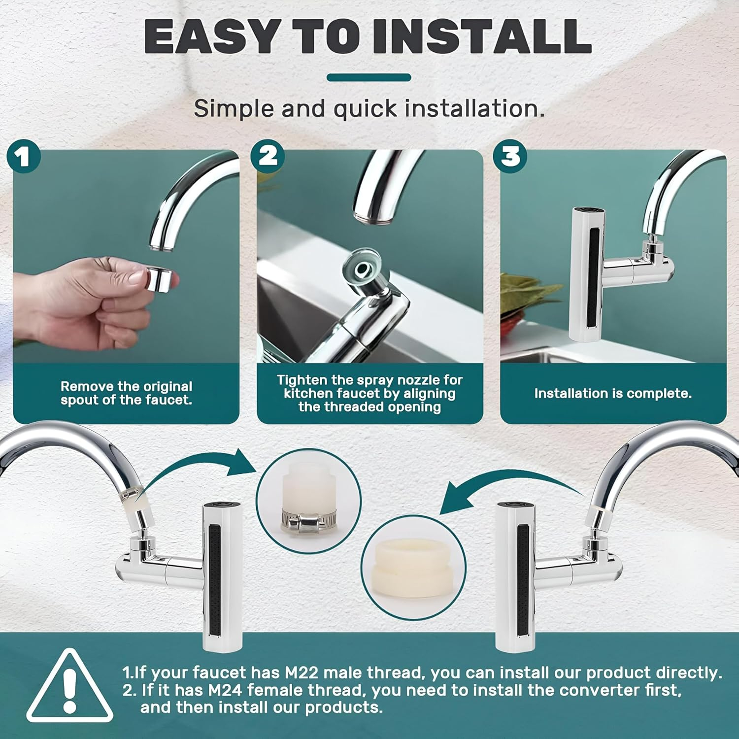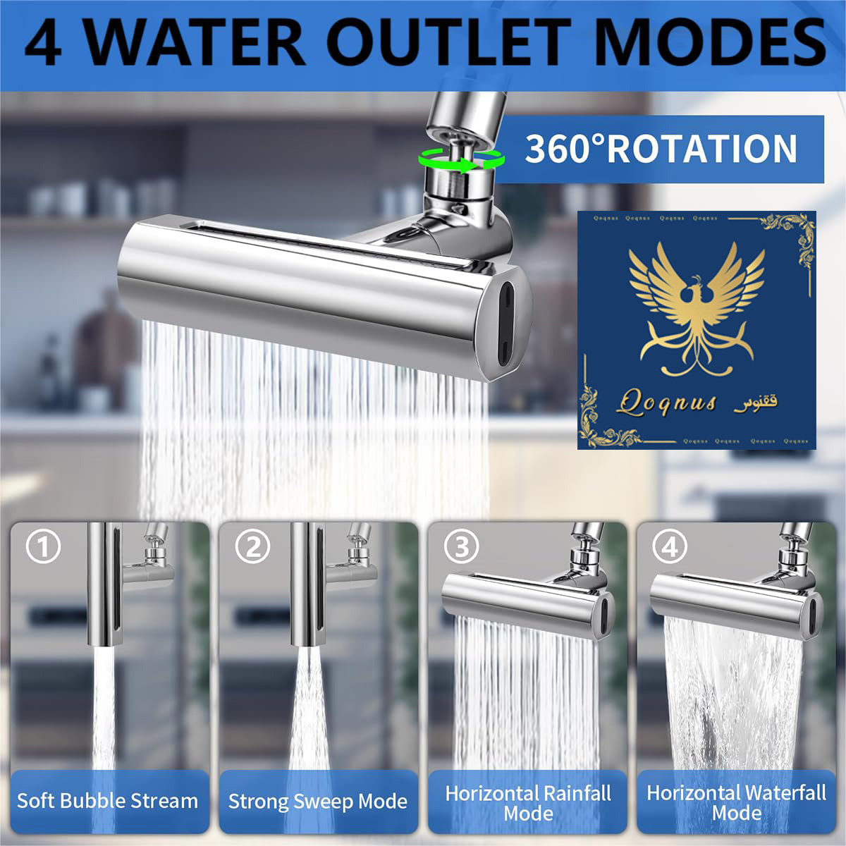 سر شیر آب ققنوس مدل متحرک آبشاری New-Edition در چهار طرف خود ، چهار خروجی آب با پاشش های متفاوت از یکدیگر دارد. پاشش در قسمت های پهن تر شامل حالت بارانی و آبشاری می باشد که می تواند در شست و شو و آبکشی بسیار کارآمد باشد ، اما دو قسمت کوچک کناری سر شیر چند منظوره ، دارای دو حالت پاشش روان و دو تیغه است که فشار بیشتر پاشش را به همراه دارند و بسته به نیاز قادر خواهید بود یکی از حالت ها را انتخاب کنید ، کافی است سری محصول که امکان چرخش 360 درجه را دارد به صورت دوار بچرخانید . علاوه بر این ، سر شیر متحرک بازویی از قسمت اتصال به شیر آب امکان حرکت در زوایای مختلف را نیز دارد که می توانید در صورت لزوم از این ویژگی کالا بهره ببرید ، پس می توانید بهتر ، ساده تر و البته با مصرف آب کمتر شست و شو کنید . نکته: سایز قطر این سری شیر آب برای تمامی شیرهای روشویی و آشپزخانه رایج بازار ایران مناسب می‌باشد.