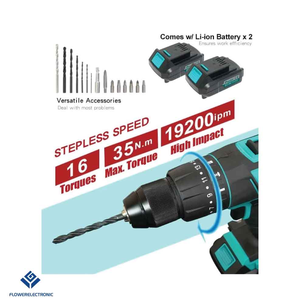 ۱۶ حالت برای پیچ‌گوشتی + ۱ حالت دریل + ۱ حالت ضربه‌ای