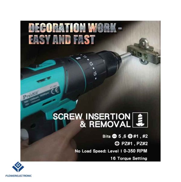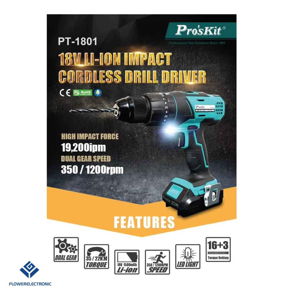 • دریل پیچ‌گوشتی شارژی Pro’sKit PT-1801G